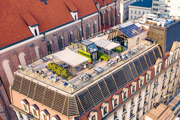 Taras na dachu Hotelu Monopol to miejsce, gdzie można cieszyć się pięknem Wrocławia z wysokości. Oferuje niezapomniane widoki oraz wyjątkową atmosferę, idealną do relaksu i delektowania się chwilą.